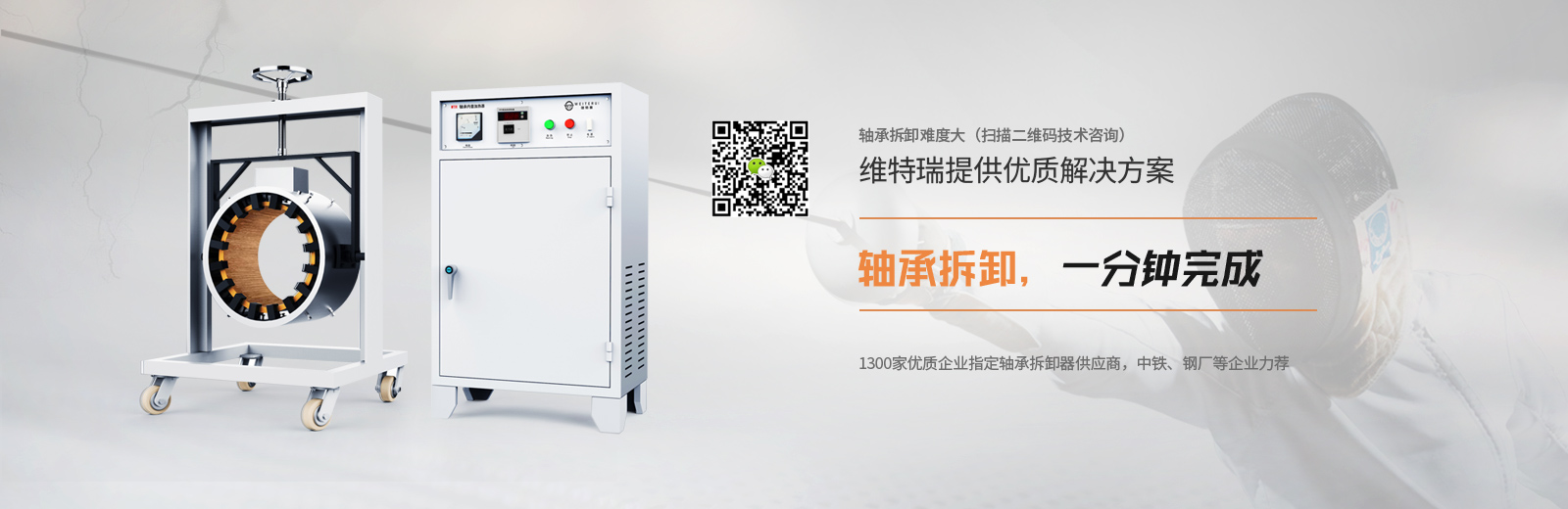 WTR轴承拆卸器利用电磁感应加热原理对轴承内套由表及里均匀加热,使轴承内套在瞬间产生热膨胀,内孔大于轴径过盈装配量,从而顺利地拆下或装上轴承内套。